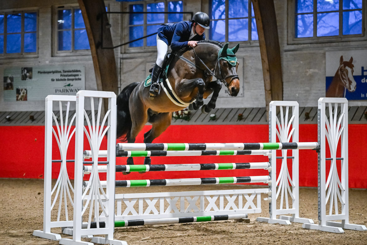 Ciroc EC Z besticht durch seine sportliche Veranlagung, einen top Charakter und eine erstklassige Abstammung. Sein jetziger Besitzer und erfahrener Pferdezüchter Hermann Schultheiß erwarb diesen dunkelbraunen Hengst bei der Hengstkörung in Zangersheide. Bereits dort zeigte er sein aussergewöhnliches Springvermögen und eine beeindruckende Manier beim Freispringen. Auch auf hartem Boden präsentierte er sich mit kraftvoller Bewegung und einem korrekten Fundament. Auf Grund dieser Eigenschaften wurde Ciroc EC Z auch kurz darauf von der Körkommission für den DSP anerkannt. Neben seiner sportlichen Veranlagung ist Ciroc EC Z auch im täglichen Umgang äußerst unkompliziert. Im Januar 2025 konnte er die Leistungsprüfung in Stadl-Paura als zweitbester Hengst abschließen. Unter seiner Reiterin zeigte er sich im Parcours souverän und gelassen mit toller Manier. Genau so präsentierte er sich auch beim Fremdreitertest. Für die Leistungsbereitschaft erhielt er die Note 8,5 und für die Rittigkeit wurde die Note 8,8 vergeben. Auch beim Freispringen bestach er wiederum mit exzellenter Technik, Reflexen, Kraft und enormem Vermögen. Nach seiner Ankunft im Gestüt Grenzland wurde er neben seinem Deckeinsatz behutsam von Thomas Mang an den Turniersport herangeführt. Wie bereits zuvor, zeigte er sich auch bei dieser neuen Aufgabe absolut souverän. Jede Runde präsentierte er sich mit viel Übersicht, hervorragend ausbalanciert und locker springend. Dies brachte ihm bei jedem Start eine Platzierung ein.